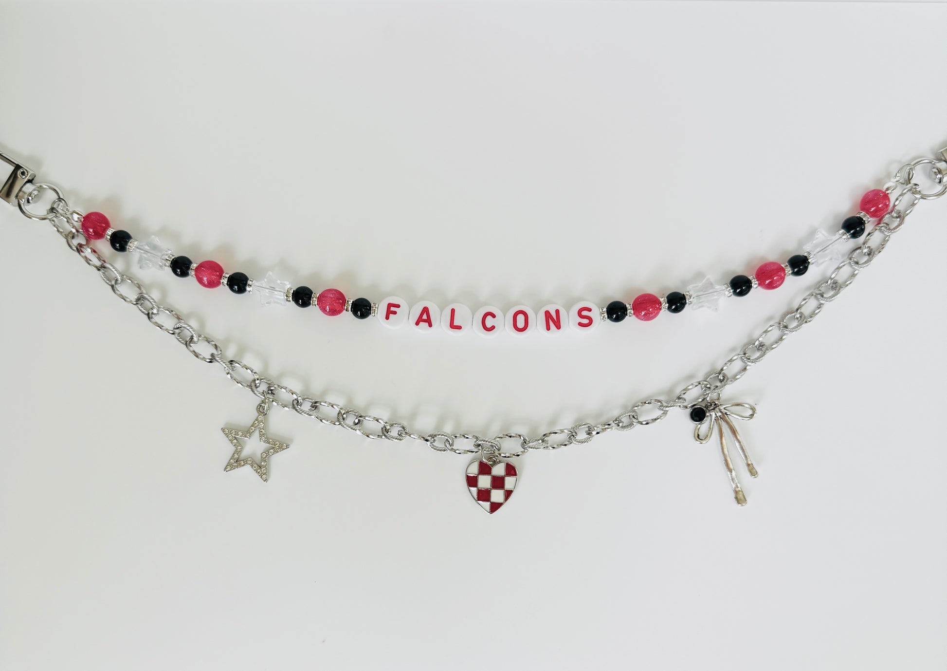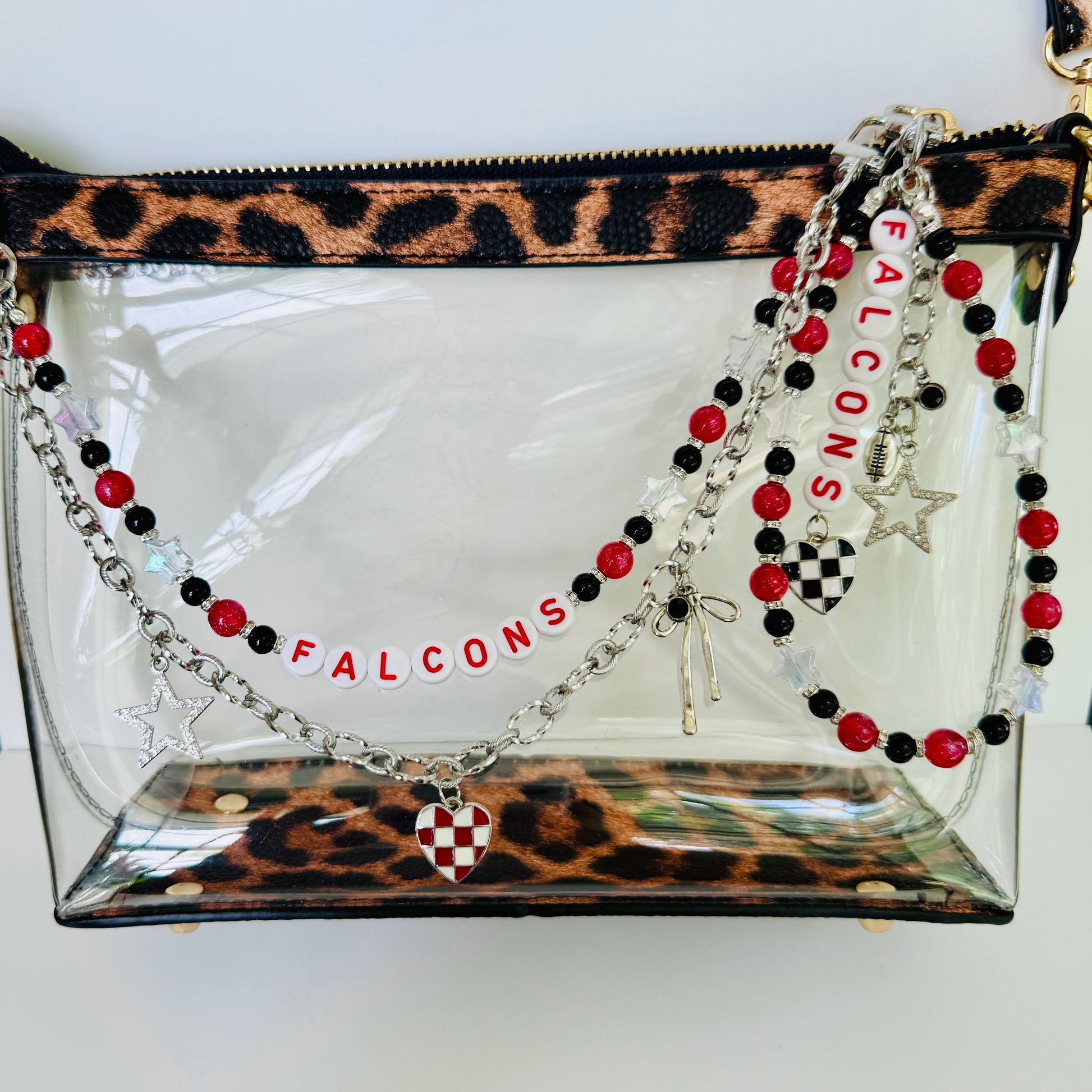 Falcons Beaded Bag Charm or Chain: Red & Black Game Day Accessory