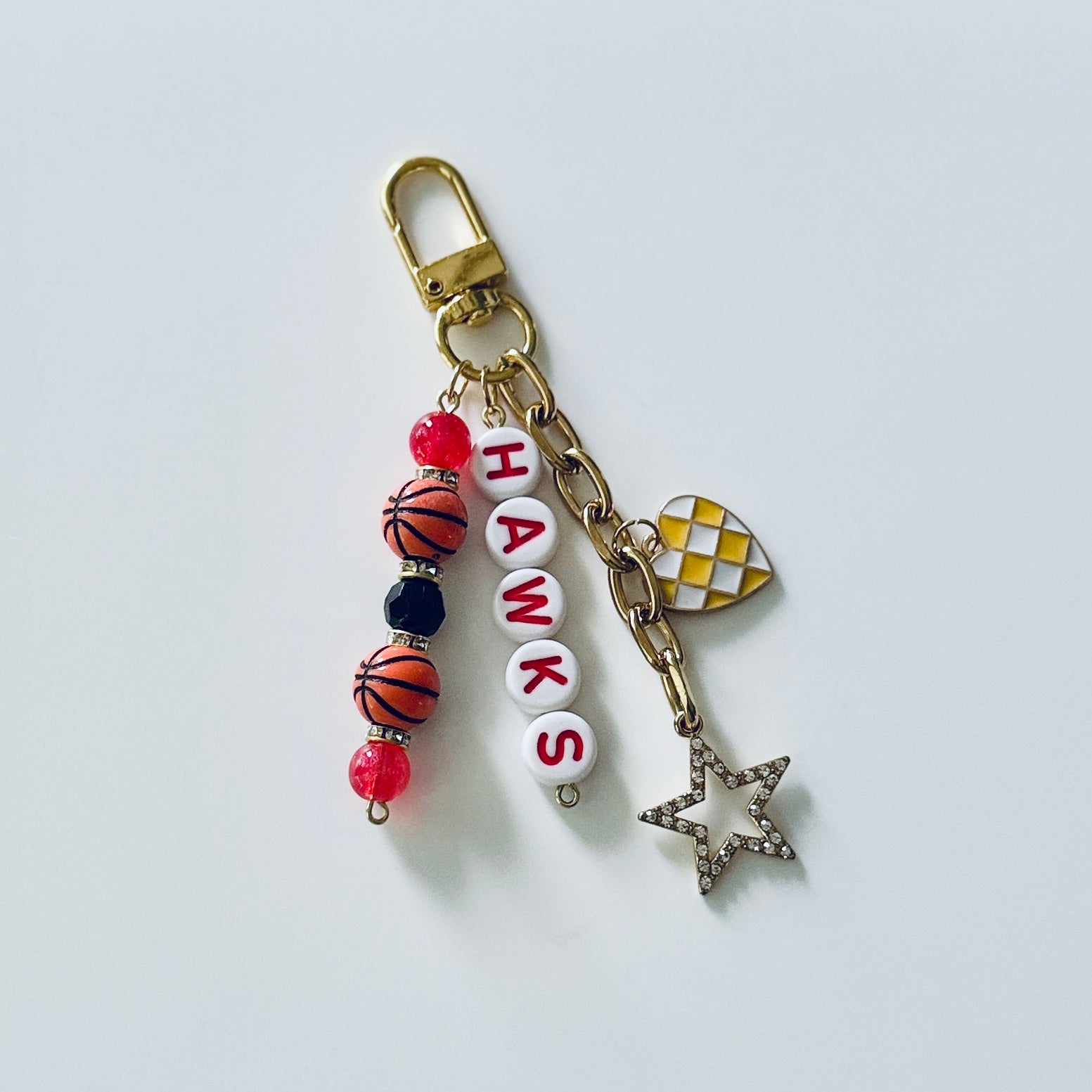 Rep your love for basketball with this handmade Hawks-inspired keychain. Featuring bold beads, playful charms, and team colors, it’s the perfect accessory for game days or everyday use.