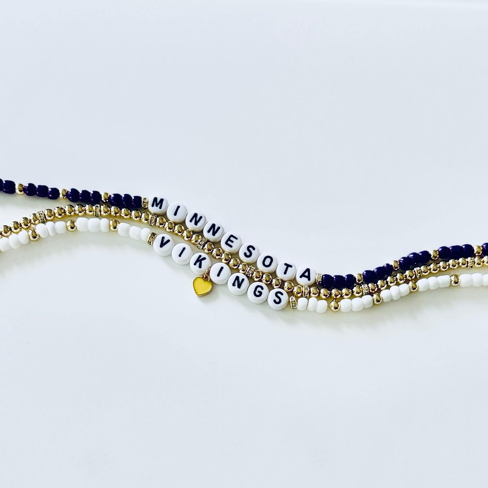 Made with 4mm glass seed beads, 4mm gold plated beads and 7mm acrylic alphabet beads.